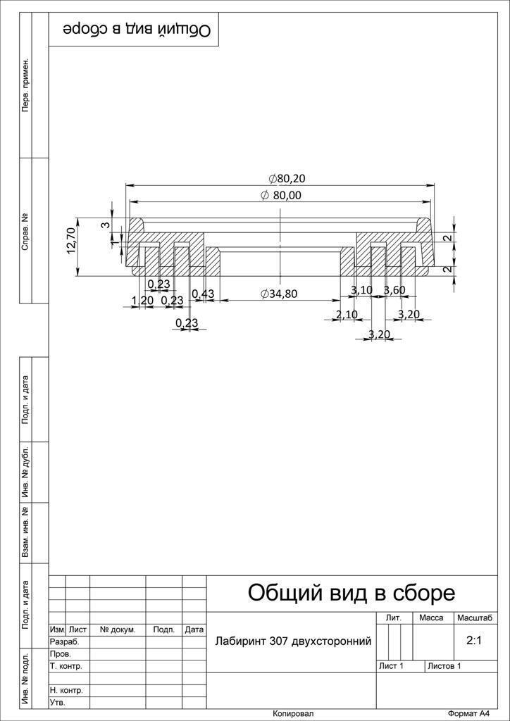 Лабиринтное уплотнение под 307 подшипник; 34,8; 80,2; 12,7
